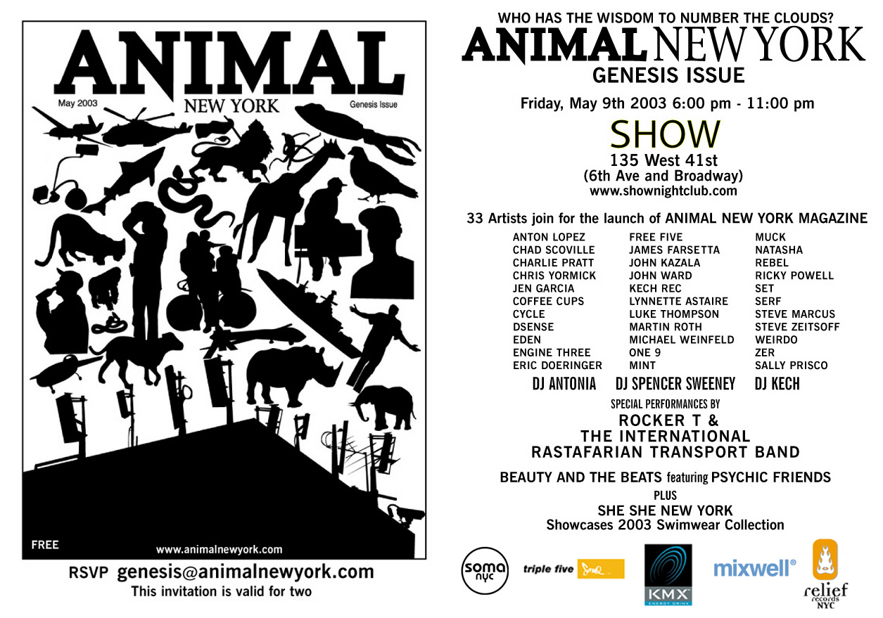 ANIMAL NEW YORK, a great magazine. 09 May 2003, this Friday night, things kick off with a killer